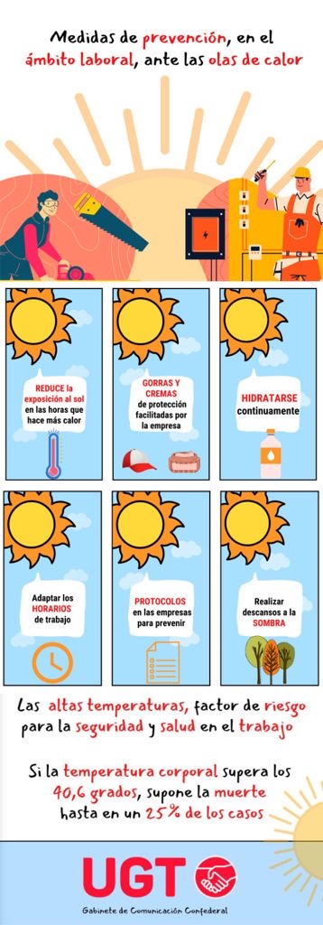 Noticias por José María Casero11 agosto, 202111:38 Medidas de prevención, en el ámbito laboral, ante las olas de calor 👀 Medidas de prevención, en el ámbito laboral, ante las olas de calor 🔥. 👉 UGT exige extremar las precauciones y cumplir la normativa para evitar accidentes por olas de calor 🥵. MEDIDAS DE PREVENCIÓN, EN EL ÁMBITO LABORAL, ANTE LAS OLAS DE CALOR Compartir: Haz clic para compartir en X (Se abre en una ventana nueva) X Haz clic para compartir en Facebook (Se abre en una ventana nueva) Facebook Haz clic para compartir en WhatsApp (Se abre en una ventana nueva) WhatsApp Haz clic para enviar un enlace por correo electrónico a un amigo (Se abre en una ventana nueva) Correo electrónico Haz clic para imprimir (Se abre en una ventana nueva) Imprimir Haz clic para compartir en Telegram (Se abre en una ventana nueva) Telegram Haz clic para compartir en Pinterest (Se abre en una ventana nueva) Pinterest Haz clic para compartir en Pocket (Se abre en una ventana nueva) Pocket Haz clic para compartir en Tumblr (Se abre en una ventana nueva) Tumblr Haz clic para compartir en LinkedIn (Se abre en una ventana nueva) LinkedIn Haz clic para compartir en youtube (Se abre en una ventana nueva) youtube Haz clic para compartir en flick (Se abre en una ventana nueva) flick Haz clic para compartir en Reddit (Se abre en una ventana nueva) Reddit Me gusta Cargando... Relacionado