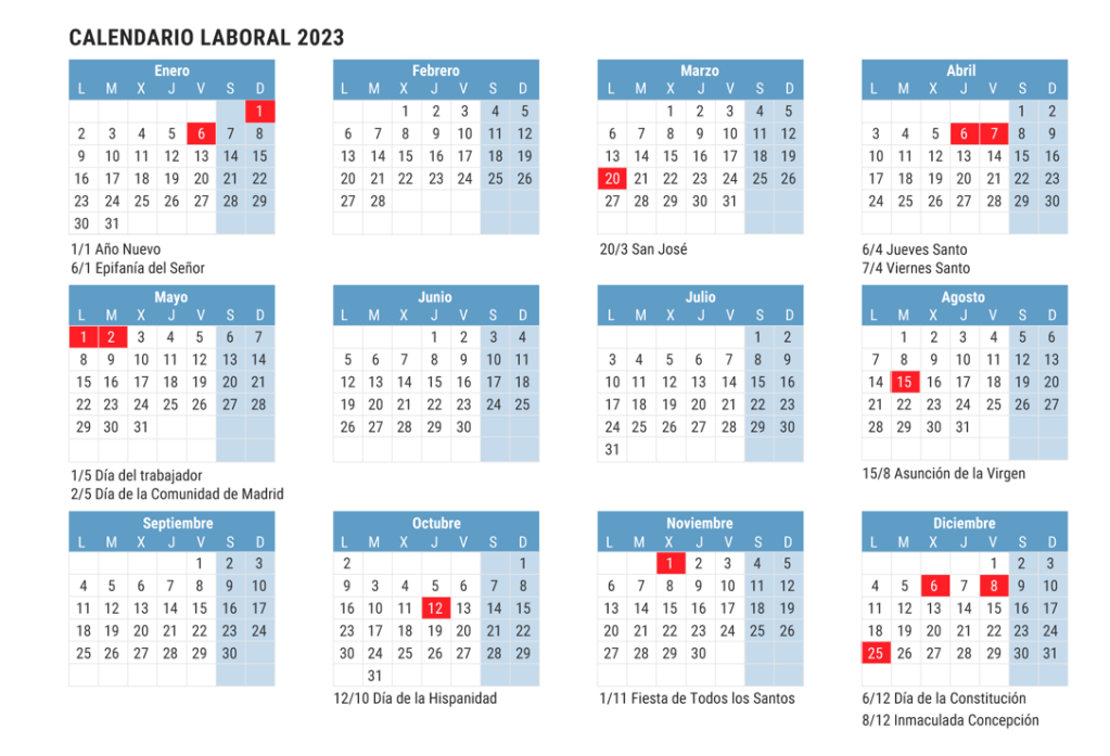La Comunidad de Madrid aprueba el calendario laboral para 2023 con 12 festivos y los dos que fijen los ayuntamientos
