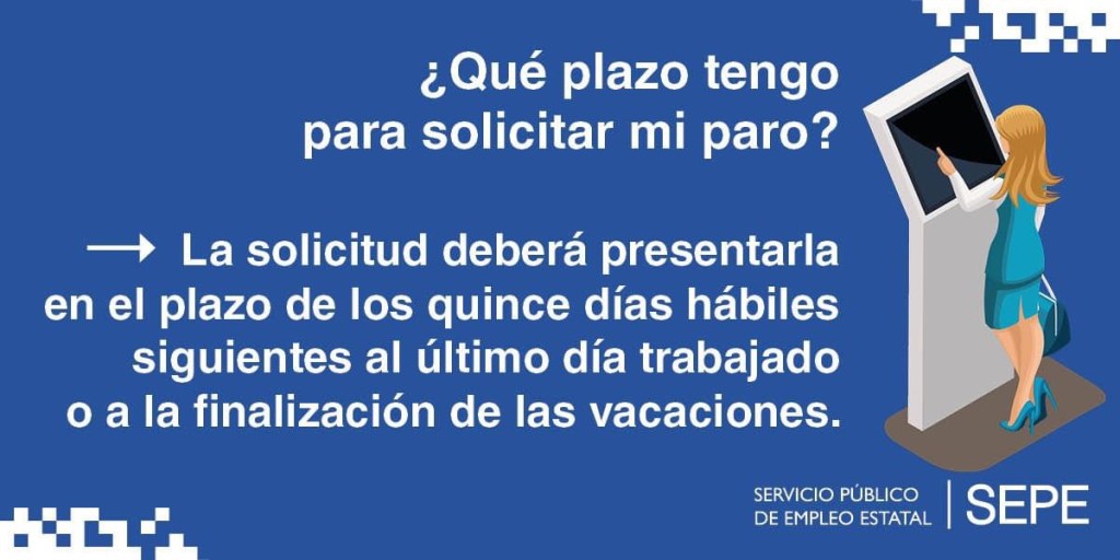 Una vez haya transcurrido tu periodo de vacaciones tendrás un plazo de 15 días hábiles para solicitar tu prestación. Puedes hacerlo a través de Sede Electrónica o acudiendo con cita previa a una oficina de prestaciones del SEPE.