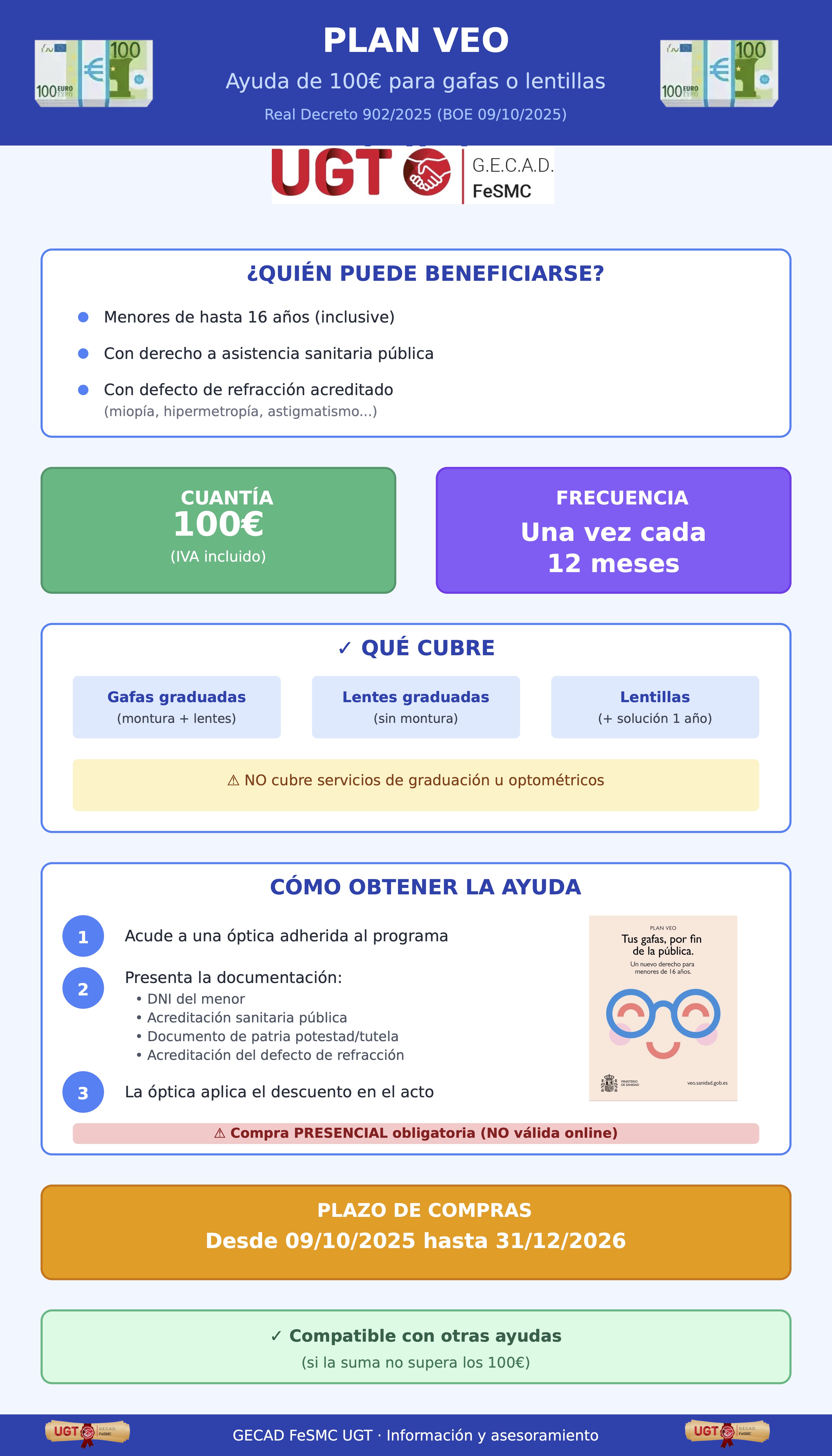 Ayuda de 100 € para gafas o lentillas (Plan VEO)